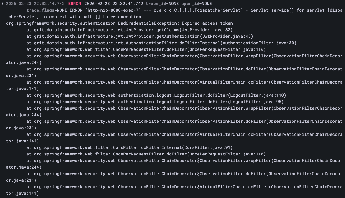 물론 서블릿 필터(JwtExceptionFilter, AuthenticationEntryPoint)와 스프링(@RestControllerAdvice) 양쪽에서 응답 DTO를 직렬화하는 코드가 중복되는 점은 아쉽다. 하지만 각 생명주기와 계층 간의 독립성을 지켰다는 점에서는 가치 있는 트레이드오프였다고 생각한다.